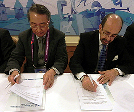 ERZURUM – Following the desire to encourage and promote mutual cooperation in university sports, Mr Alberto Gualtieri, President of the European University Sports Association (EUSA) and Mr Xinsheng Zhang, President of the Asian University Sports Federation (AUSF) signed on January 27th, 2011 the Protocol on cooperation between EUSA and AUSF.