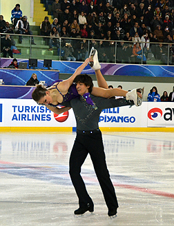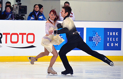 In Ice Dancing 15 couples from 10 countries entered the competition. After performing their short program Russians Kristina GORSHKOVA / Vitali BUTIKOV are ranked first followed by the Italian couple Lorenza ALESSANDRINI / Simone VATURI in second place and Louise WALDEN / Owen EDWARDS from Great Britain. Turkish skaters Alisa AGAFONOVA / Alper UCAR are in fourth spot to the delight of the spectators who came in drones as the arena was sold out.