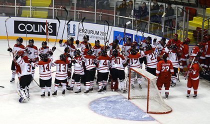 The Canadian team formed a lane of honor to escort the Turkish team off the ice