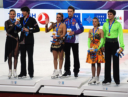 The Ice Dance medal podium