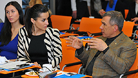 The famous TV presenter noted the high speed of construction picked up on the threshold of the 2013 Summer Universiade and the city’s rapid development. Tatarstan’s Minister of Youth Affairs, Sports and Tourism Rafis Burganov and Director General of the Kazan 2013 Executive Directorate Vladimir Leonov accompanied Tina Kandelaki during her tour and explained the preparation progress of the 27th World University Summer Games in Kazan.
