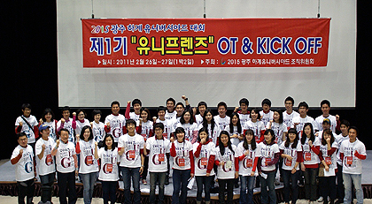 The first round of UNI FRIENDS will promote the 2015 Gwangju Summer Universiade for the next six months through online and offline activities. Online activities will take place through social networking media such as Facebook, Twitter, Blog, etc. For offline activities, the students will participate in university festivals in Korea, AIPS Congress, 2011 Daegu IAAF World Championship, and 2011 Shenzhen Summer Universiade.