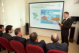 Sergey Ivanov studied the construction progress of the 2013 SU sports venues, transport and parking lots availability. A special attention was paid to security issues. The Deputy Prime Minister suggested to use the GLONASS system. President Rustam Minnikhanov presented the Republican Centre for Space Services based on the Russian Satellite Positioning Systems. The Centre will operate during the World University Summer Games and provide security for visitors to Kazan.