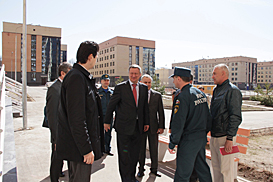 KAZAN – On April 27th, the Universiade Village was visited by Deputy Chief State Inspector of the Russian Federation, EMERCOM’s Head of Supervisory Department, Mayor General of Internal Service Yury Deshevykh and Minister for Emergency and Civil Defense of the Republic of Tatarstan Rafis Khabibullin.