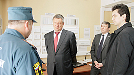 Yury Deshevykh inspected the facilities’ compliance with fire protection requirements. During the inspection visit he checked the performance efficiency of an automatiс fire extinguishing system, fire alarm and voice warning system.