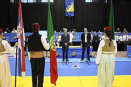 The competitions took place in Ilidza Sports Centre, where also the Opening and the Closing Ceremonies were organised. The opening started with the march pass of the students athletes. The participants were after addressed by Mr Branislav Crnogorac, President of the BiH Committee of University Sports and Mr Matjaz Pecovnik, EUSA Secretary General. Mr Crnogorac thanked all the authorities, sponsors, referees and students volunteers for their contribution in organizing this event, as well as EUSA for attributing the event to Sarajevo. Mr Pecovnik thanked the Organising Committee and BiH Committee of University Sports for taking the challenge and organise the first edition of the European Universities Championships in Judo. “Already now I can say that this event exceeds all our expectations and is a great prospect for all the next editions to be organised” he added.