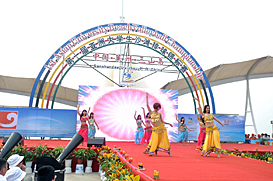 All the participating teams marched in according to AUSF Protocol order. The stage was T shaped, which was especially designed for the athletes, because they were the real stars of the day. With the presence of all the participants, the mayor Mr. YANG Hongxu delivered a welcome speech. Mr. CHOW Kenny, AUSF Secretary General, delivered a speech, expressing his gratitude to the Organizing Committee for hosting this championship. He also welcomed all the participating teams. He said he was sure that the young athletes would make the most of this occasion to strive for the best and to enrich themselves through this championship. Finally, Mr. CHOW Kenny invited the OC President YANG Hongxu to declare the opening of this championship. The firework made the ceremony come to a climax. And with the hoisting of AUSF flag, the athletes and referees representatives took the oath. All the participants enjoyed a 40-minute cultural performance.