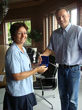 Milan Augustin presents a FISU Souvenir to Sarah Lewis