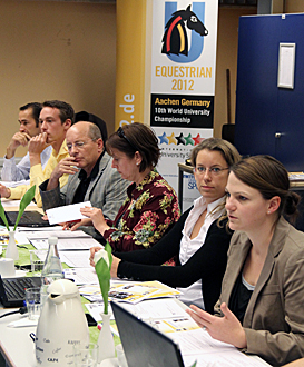 AACHEN – On its third session on the 4th of October, the organizing committee of the 2012 World University Equestrian Championship (WUEC) in Aachen evaluates the work results and is pleased about the progress. The planning of competitions was in the main focus. On the 5th of October the organizers went to the CHIO grounds to inform themselves about the competitions sites, which will be the setting for the WUEC from August 22nd to 26th, 2012.