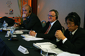 FISU EC members Hisato Igarashi (Japan) and Marian Dymalski (Poland) together with FISUDirector SU Marc Vanderplas (Belgium) arrived in Brasília on Tuesday morning, November 3rd and were welcomed by Célio René, Secretary of Sports of the Federal District, Luiz Otávio Neves, the Secretary of Tourism GDF, and Luciano Cabral, President of the Brazilian University Sports Confederation (CBDU). The delegation went to the hotel Royal Tulip (Blue Tree) where will be held the presentations of the Bid Committee for the FISU officers.