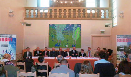 Delegates of the organizing committee gathered in the VIP lounge of the City ofBriveto present the project to the various media. The following persons attended the pres conference: Jacques Fontanille, President of the University of Limoges and Chairman of the Organizing Committee:André Pamboutzglou, Deputy Mayor of the city of Brive; Robert Penalva, Vice President of the General Council of the Correze; Jean-Louis Boujon, Vice President of the French Rugby Federation; Roger Fite, President of the Territorial Limousin; Laurent Briel, Director of the FISUWorld University Championships; Monique Paulou, National Director FFSU and Vincent Rognon, Deputy National Director in charge of rugby at the FFSU (accompanied by Lionel Lascoux, FFSU Regional Director and co-director of the event and Damien Bardot, FFSU Director of communication and partnerships); Jean-Michel Martinet, Regional Director of Youth and Sports and Social Cohesion and Jean-François Teyssandier, Chairman of the Departmental Committee Olympic and Sports. All of the participants reaffirmed their commitment and support to make this event a great success.