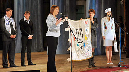 The presentation of the 27th Summer Universiade gathered students of all higher education and specialized secondary education establishments of Bugulma. Larisa Sulima, Chief of Staff of the Kazan 2013 Executive Directorate, talked to students of Bugulma and gave a review of the preparation progress of Tatarstan and Russia for the World University Summer Games in Kazan.