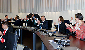 Members of the Executive Committee were presented the reports of the inspection visits of the evaluation committee, performed in October by Mr Alberto Gualtieri, Mr Kemal Tamer and Mr Matjaz Pecovnik. The bidding cities: Wroclaw, Poland and Rotterdam, theNetherlandsthen presented their candidatures to host the 2nd edition of the European Universities Games in 2014. A draw decided on the order of presentation.
