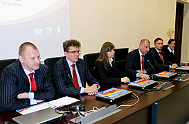 The City of Wroclaw followed. The official delegation was lead by Mr Rafal Dutkiewicz, Mayor of Wroclaw; and with other members being Mr Andrzej Rokita, Vice–Rector of University of Physical Education in Wroclaw; Ms Hanna Domagala, Wroclaw EURO 2012 Office Director; Mr Pawel Randa, silver medallist in rowing 2008 Beijing Olympics, Member of Wroclaw Sport Council; Mr Piotr Marszal, Vice-President of AZS Wroclaw and Ms Joanna Zdunek, City of Poznan representative.