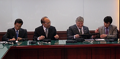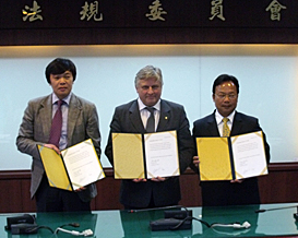 These special conditions offered by the OC of Taipei 2017 were the subject of an amendment to the attribution contract. This amendment was drafted in consultation with the FISU representatives in an MOU that was signed this afternoon at Taipei City Hall by the Treasurer of FISU Bayasgalan Danzandorj, the FISU SG/CEO Eric Saintrond, the Vice-Mayor of Taipei Dr. Tin-Ting Yu and the SG of the city ofTaipei Mr. Yeong-Ren Chen. The final contract signing will take place at an official ceremony in the presence of theFISU President Claude-Louis Gallien during the 2012 FISU Forum which will be held from March 26th to 31st in Taipei City.