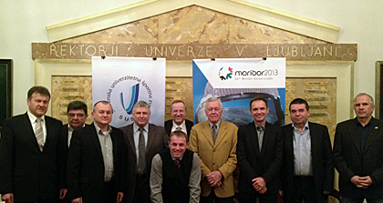 LJUBLJANA – Yesterday, January 26th, 2012,FISU representatives Eric Saintrond, SG/CEO; Roger Roth, CTI Chair and Milan Augustin, Director WU had a meeting at the University in Ljubljana with the 2013 WU Organizing Committee represented by Tone Vogrinec, President; Srecko Vilar, CEO WU 2013; Srecko Medven, Sports Director WU 2013; SUSA President Otmar Kugovnik together with the Mayor of the Municipality of Maribor Franc Kangler; representative of the Municipality of Zrece Drago Šeserko and representative of the Municipality Ruse Alexander Bruncko.