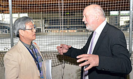Sergio Anesi, Universiade Coordinator (right) with Nam-Hwan Park, CT Chair for short track speed skating during the visit of the Pine Ice rink in Baselga di Piné
