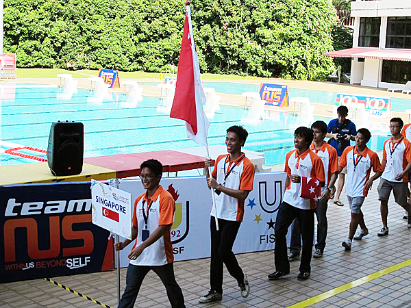 SINGAPORE – On June 14th, the 2nd Asian University Water Polo Championships was officially opened by a simple yet lively Opening Ceremony which was graced by the presence of AUSF Vice-President and President of the Chinese Taipei University Sports Federation, Dr. Chen Kun Ning and AUSF General Coordinator Laura YAN. It was attended by all the participating teams, accompanied by guests from the Singapore University Sports Council, National University of Singapore (NUS) and Singapore Swimming Association.