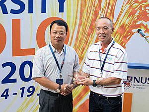 In the welcome speech by Mr. SEETOW Cheng Fave, the OC President and AUSF Treasurer, said “Sport is an effective platform to forge relationship and lasting friendships. Matches will be won and lost but friendship across the Asian countries will be strengthened.” Also, he expressed the gratitude to both AUSF and Singapore Swimming Association for their strong support. AUSF Vice President Chen Kunning delivered a speech on behalf of AUSF. He said “AUSF will go a long way towards further development of water polo Asian wide. AUSF thanks you for your participation. We believe that this championship will play a very important role to bring together young players from different parts of Asia, make a better understanding among each other and upgrade the technical standards of water polo”. After the speeches, Dr. Chen presented an AUSF souvenir to Mr. SEETOW, showing the gratitude.
