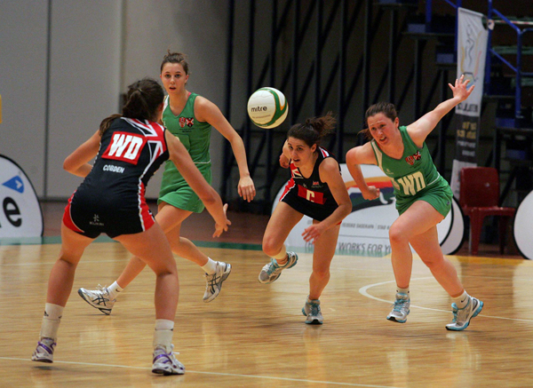 Great Britain Goal Shooter Steffi Burt snatches the ball away from Ireland’s Goal Keeper Gemma Gibney in their semi-final match of the WUNC on Friday 6 July 2012