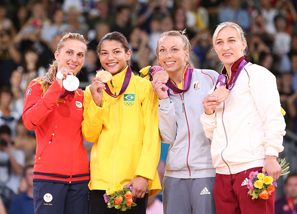 Right: Former SU participants Charline Van Snick (BEL) and Éva Csernoviczki (HUN) together on the Olympic judo podium (Photo IJF)