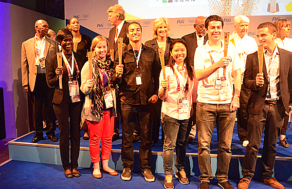 At an AIPS event last Thursday at the London Olympics, where the International Sports Press Association celebrated its ‘veterans’ among the Olympic Reporters – those with more than 10 Olympics under their belt – the Young Reporters were praised as well. The celebrants received a miniature Olympic Torch. A classy celebration of more than 100 journalists and photographers in the presence of Olympic Legend Edwin Moses, double Olympic Champion and breaker of four world records. Joining Mr Moses was his great friend, a very spritely 89-year-old Harrison Dillard, the oldest living Olympic 100m champion (London 1948 and Helsinki 1952). Also in attendance were Laureus Academy Members Australian swimming great Dawn Fraser, IOC vice-president Nawal El Moutawakel who was the first female Muslim athlete to win an Olympic gold medal, Kenyan track and field legend Kip Keino, and current Olympic triathlon champion, Australia’s Emma Snowsill, a Laureus Ambassador. They were joined by Dick Fosbury, Olympic gold medalist, former President of the World Olympians Association and architect of the back-flip high jump “Fosbury Flop”, former US Olympic swimmer and TV journalist Donna de Varona, Cuban Olympic volleyball star and IOC Member Yumilka Ruiz, and Kenyan long distance world record holder and peace activist Tegla Loroupe, the recipient of the AIPS/CIFP 2010 Promotion of Fair Play award.