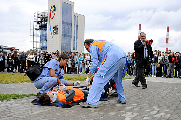 Much attention was also given to security provision in the run-up to and during the FISU World University Championships. Representatives of various services and departments attended the training to show the staff and volunteers what to do and how to act in case of emergency.