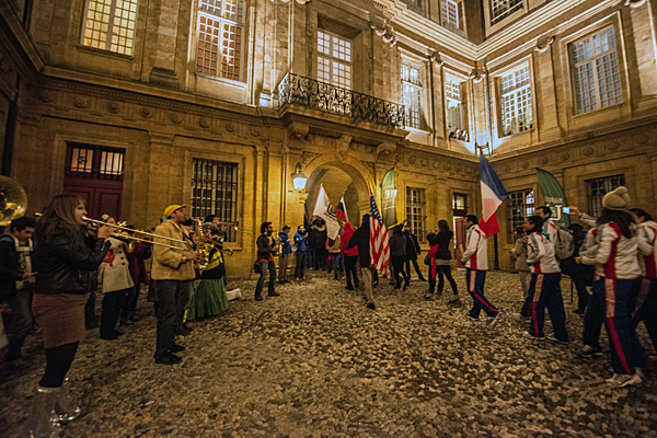 AIX-EN-PROVENCE – Yesterday, December 6th, the 7th edition of the Master’U BNP Paribas International University Tennis Challenge organized by the French University Sport Federation officially kicked off with the opening ceremony in Aix-en-Provence. It was marked by a parade of Nations held on the famous Cours Mirabeau in Aix, and was followed by the draw in the City Hall. This year eight national teams will compete during the three-day event, i.e. Germany, Belgium, China, the United States, Great Britain, Ireland, France and Russia. The tournament takes place according to an original formula, a kind of mix between the Fed Cup and Davis Cup, where each team consists of 3 male and 3 female players and where each encounter will be competed in seven matches: 2 women’s singles, 2 men’s singles, 1 women’s doubles, 1 men’s doubles 1 mixed doubles. Who will succeed Team USA, the winner of the 2011 edition in Rouen? The answer to this question will be known Sunday afternoon.