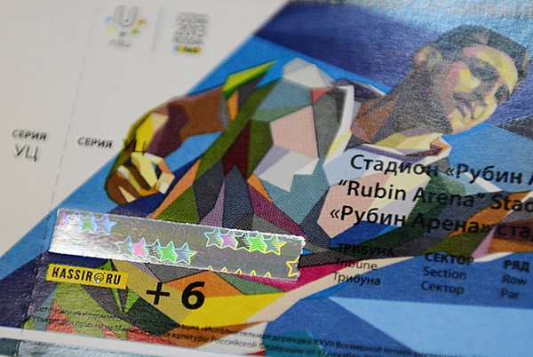“The tickets and their layout are designed to emphasise the importance of the event as with the purchase of a ticket we anticipate a huge sports festival. We would like a ticket to look like a souvenir”, said Igor Sivov, Deputy Director General of the Kazan 2013 Executive Directorate. “The tickets are made from high quality cardboard that is why they are thick and smooth. You can see straight away that it is not plain paper. And in order to protect spectators from forgery, we use three-tiered hologram and special types of paint that change colour in ultraviolet radiation”, explains Marat Barangulov, Director General of the Neoprint (FMP LLC).
