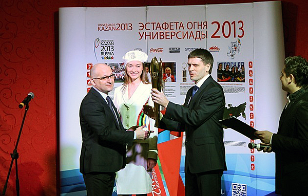 The solemn handover of the Universiade Flame was attended by Deputy Chairman of the Khabarovsk Territory Government Andrey Bazilevsky, who is also Minister of Education and Science of the Khabarovsk Territory; Sergey Galitsyn, Rector of Far Eastern State Academy of Physical Culture; Arkady Karbayev, Director of the Cultural and Social Programmes Department of the Kazan 2013 Executive Directorate; and the Flame Keepers.