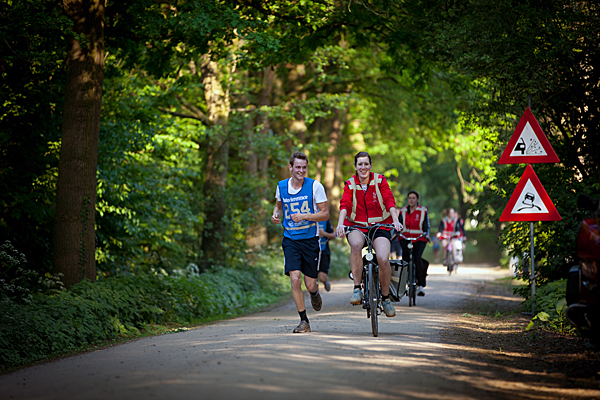 The route is divided into 25 stages, of which 17 are men’s and 8 are women’s stages. The length of these stages varies from 2.9 to 10.4 km, with the entire route of the Batavierenrace covering 172 km. Every runner is guided by a cyclist and the teams transport themselves from relay point to relay point with a minivan. Using a self-developed time registration system, every runner can see his/her time upon arrival and all the fans can receive the times directly via internet or via an app on their phone.