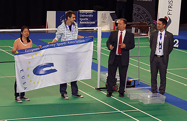 The EUSA flag was passed on to the Technical University Delft, to be delivered to the Dutch Students Sports Association (Studentensport Nederland), as the next EUSA event featuring badminton will be the 2nd European Universities Games, which will take place in Rotterdam, the Netherlands in 2014.