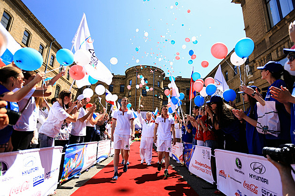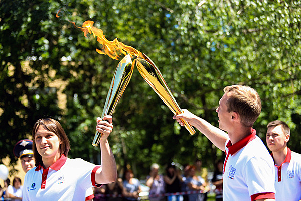 The length of the Stavropol leg of the Torch Relay was 3,500 metres. The region’s best students, athletes, volunteers and representatives of the 2013 Summer Universiade’s partners had the honour of bearing the Torch. All together, 36 Torchbearers carried the main symbol of this summer’s World University Games through the streets and squares of Stavropol.