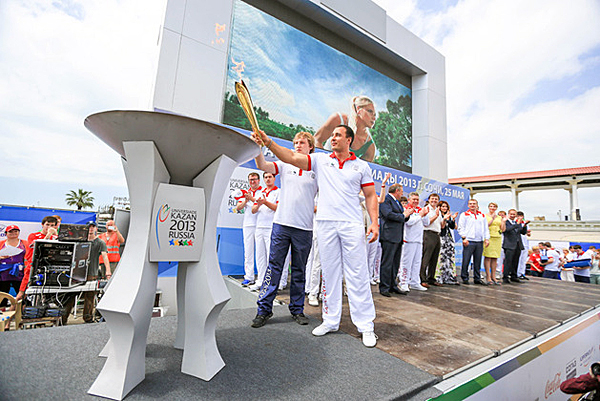 The route of the Universiade Torch Relay in Sochi was 2,000 metres long. It started off in front of the Winter Theatre, and this is where the first torch of the Sochi leg of the Relay was lit. The solemn ceremony was attended by Minister of Physical Culture and Sport of the Krasnodar Krai, Merited Master of Sport, Olympic champion Lyudmila Chernova; Mayor of Sochi Anatoly Pakhomov; Minister of Youth Affairs, Sports and Tourism of the Republic of Tatarstan Rafis Burganov; Deputy Director General of the Executive Directorate of the 27th Summer Universiade 2013 in Kazan, Executive Director of the Opening and Closing Ceremonies Igor Sivov; Deputy Head of Kazan’s Executive Committee on Social Affairs Leyla Fazleyeva; Deputy Director General of the Executive Directorate of the 27th Summer Universiade 2013 in Kazan Larisa Sulima; as well as Krasnodar Krai Legislative Assembly deputy Viktor Teplyakov.