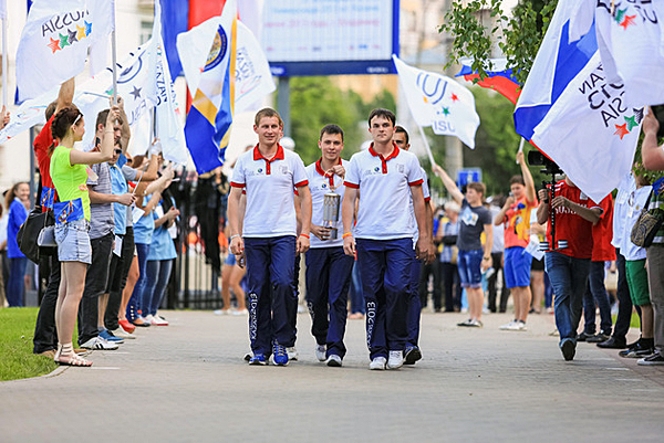 Andrey Tikhonov greeted citizens of Vladimir on behalf of all the Universiade Flame Keepers. “We take great care in keeping the Universiade Torch and carrying it from city to city. And today we have the honour and privilege of bringing the main symbol of the Universiade from Saint Petersburg to Vladimir. It is a great honour to be a part of the Universiade Torch Relay because the Flame is a symbol of peace, friendship and student solidarity.”