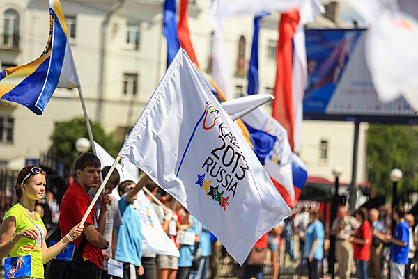 The privilege of carrying the Universiade Flame through the streets of one of Russia’s Golden Ring cities was bestowed on top students, athletes, volunteers and representatives of the Kazan 2013 SU’s partner companies. The honour of getting the Torch Relay started was given to Anton Neudakin, Master of Sports, winner of the 2013 Russian Artistic Gymnastics Championship and Summer Universiade medallist.