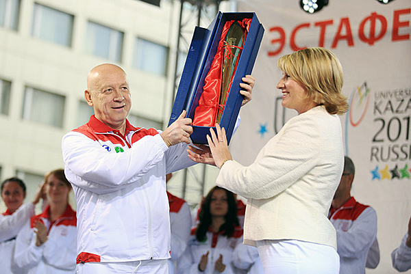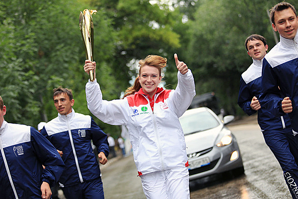 The honour of being a Torchbearer in the Relay was granted to the best students of the city, members of the government, famous athletes, among them Artur Artenyan, repeat European champion and Russian bronze sambo medallist, and Oleg Grigoryev, Master of Sport, member of the Russian national track and field team and bronze medallist of Russia, as well as volunteers, representatives of youth organisations and partner companies of the 2013 Summer Universiade.