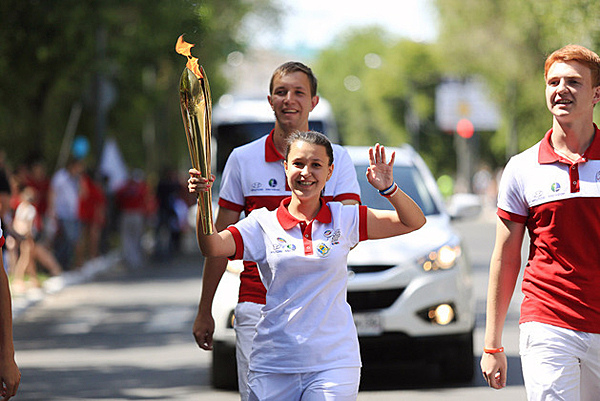 The region’s top students, government officials, outstanding athletes, volunteers, members of youth associations as well as employees of corporate partners to the 2013 Summer Universiade were given the unique right to carry the main symbol of the World University Games in Orenburg.