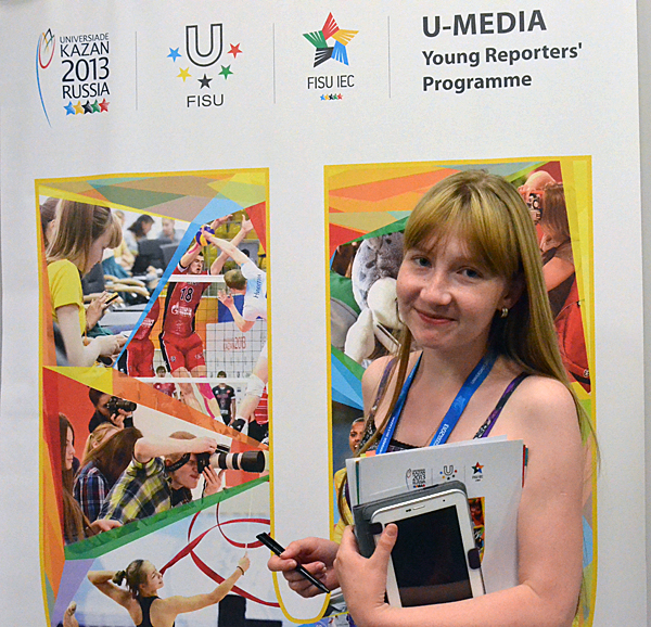 KAZAN – Sporting a rainbow-stripe t-shirt and a long, blonde ponytail, Polina Gladkaya, walks into the FISU Young Reporters Programme room in the Main Media Centre in the Kazan-Arena during the 2013 Summer Universiade eager to learn.