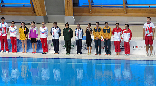 While the ceremony varies by sport, it remains similar. In individual events, like diving, the participants are marched out and introduced one-by-one. It creates an electric atmosphere as it gives the energetic crowd a chance to cheer their fellow countryman or woman and show their appreciation. A gentle wave from the participant only adds to the excitement.