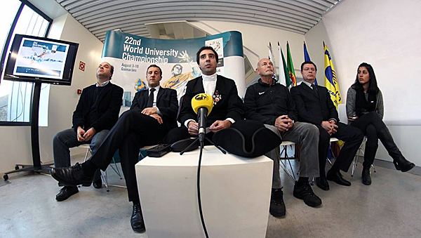 With only nine months to the opening ceremony of 2014 World University Handball Championship that will be held in the Portuguese city of Guimarães, from 3 to 10 August, and in the end of the inspection visit of the FISU Technical Delegate for Handball, Frantisek Taborsky and the FISU WUC Department Executive Assistant, Julien Buhajezuk, the local Organizing Committee prepared a session that was attended by the Vice-President of Guimarães City Hall, Amadeu Portilha, the Vice-President of the Handball Federation of Portugal, Augusto Silva, the Vice-President of the Portuguese University Sports Federation (FADU), the President of the OC and President of University of Minho Students Union, Carlos Videira and the Secretary-General of the OC and Director of the UMinho Sports Department, Fernando Parente, among others, to present this event.