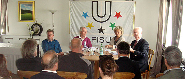 CRANS-MONTANA– The entire OC of the 15th WUC Golf 2014 to be held in Crans-Montana, Switzerland, met for a plenary session last weekend. The President of the OC, Pierre Bruchez, and the Secretary General, Guy Praplan, informed all the heads of the different departments such as accommodation, transportation, security, competition, social events, protocol, media etc. about the progress of the preparations for this important event. The OC is very pleased that 24 countries will participate with the maximum number of 144 players. With 69 female golfers and 75 male players this Championship will reach almost a gender balance. The OC is now waiting for the individual entries which will finally show the quality of the players from three continents, such as the America’s, Asia and Europe. The OC was very happy to learn that Eurosport, the media partner of FISU, will send a TV Crew to Crans-Montana. On behalf of the Swiss University Sports Federation, but also in the name of FISU, Leonz Eder thanked the OC for all the efforts undertaken in order to welcome the players, officials and FISU family members from June 23-27 in the famous Swiss resort of Crans-Montana.