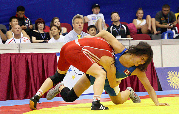 In FW 55 kg, the best wrestler out of the 8 competitors was the Japanese Hamada Chiho. She wrestled really fine during the whole day winning the gold beating Russian Irina Ologonova. Bronze was left for Samantha Stewart (CAN) and Tetyana Kit (UKR).