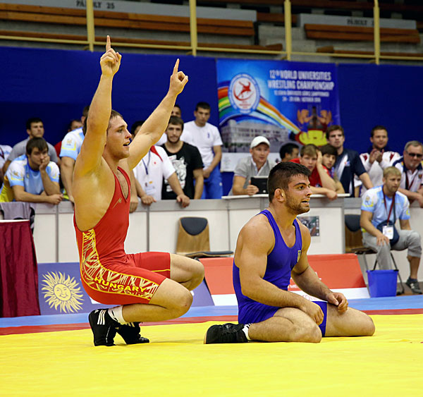 In the 66 kg category, the Hungarian Krisztián Jäger caused great surprise to everyone as he has won in his weight category. He was really confident in the final as well against the Turkish Islamov, which was the last bout of the whole 2014 WUC Wrestling too. “This is the biggest success of my life so far. Sometimes I was close to the podium, but now I can say that I am a University World Champion”, a happy Jäger commented.