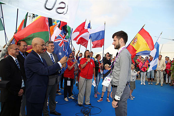 FISU Assessor Omar Al-Hai passes over the FISU Flag to the next organiser