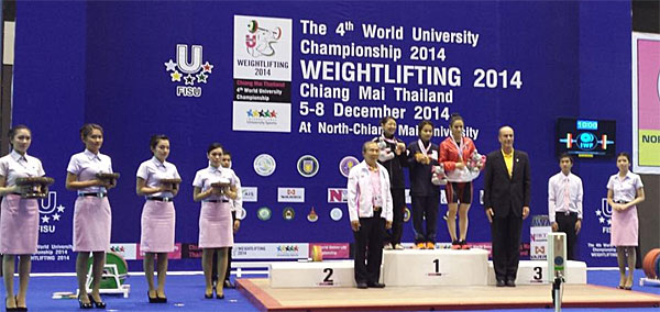 CHIANG MAI – The 4th World University Weightlifting Championship kicked-off on 5 December, an important day for the Thai nation. Indeed 5 December is Thailand’s king’s birthday and on this special occasion a crowd all dressed of yellow – the king’s colour – could support the best weightlifters in the women’s 48kg and 53kg categories as well as men’s 56 and 62kg.