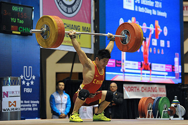 CHIANG MAI – Different day, same start. This third day of competition at the 4th WUC Weightlifting started once again with a grand slam for a Thaï athlete. In the women’s 69kg Suwannaratana (THA) won the gold medals of the snatch (97kg), clean and jerk (115kg) and total (212kg). The double silver medallist at the IWF junior world championships (2012, 2011) was followed in the snatch by Treutlein (GER) with 92kg and Aguinaga (MEX), 92kg. In clean and jerk, silver went to Grigoreva (112kg) who also won the total silver medal (203). Aguinaga (MEX) won all three bronze medals with 112kg in clean and jerk and a total of 199kg.