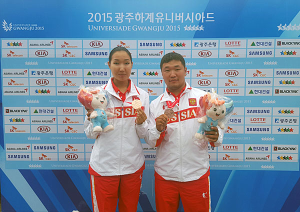GWANGJU – Archery is a very popular sport in Russia. There are 42 regions that are dedicated to this sport, and that can be demonstrated with the great representation of the country. Inna Stepanova (25) and Galsan Bazarzhapov (20), both students of the Moscow State Academy of Physical Education, represent the Russian Federation in this Summer Universiade and got the bronze medal for their country.