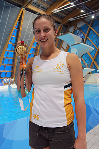 Diver Samantha Mills (AUS), gold at the 2013 SU 2013, bronze at the 2015 Worlds