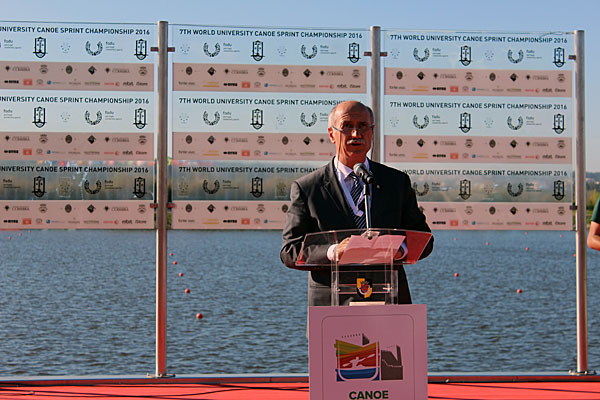 On behalf FISU Mr Kemal Tamer welcomed all the delegations and wished them good luck in this 7th edition of the Canoe Sprint Championship. He ended his speech giving the floor to Mr Vítor Pataco, Vice-President of the Portuguese Institute for Youth and Sports, to declare the 7th WUC Canoe Sprint officially open.